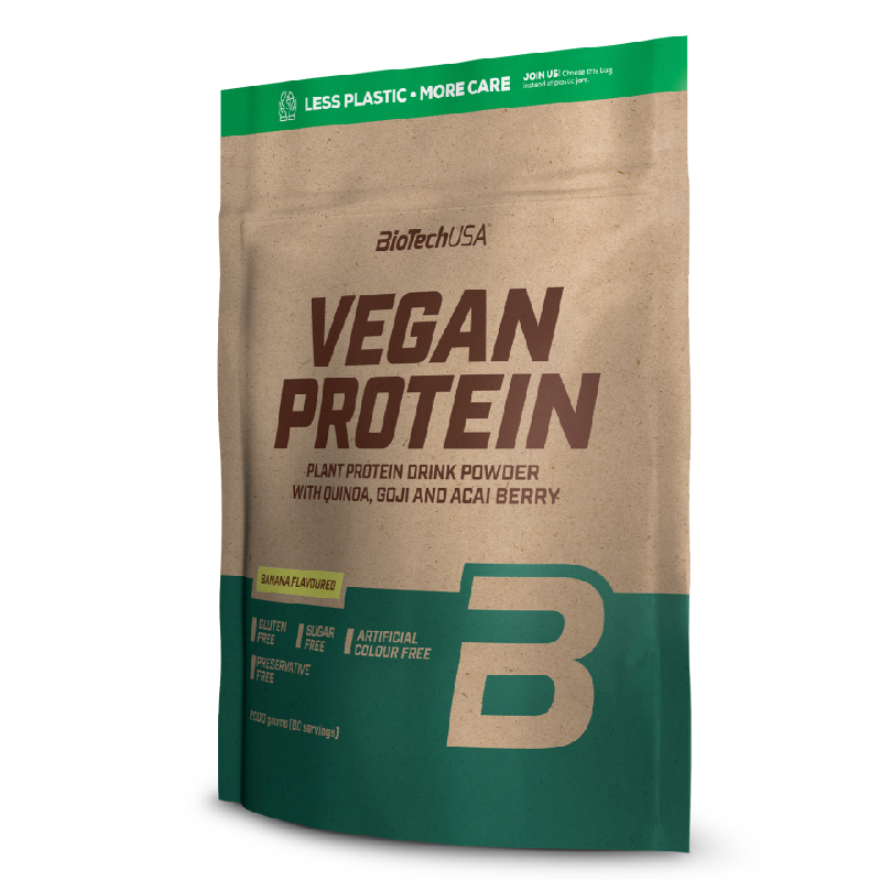 BioTechUSA Vegan Protein (2000g) er et plantebaseret proteintilskud, der kombinerer ris- og ærteprotein for at tilbyde en komplet aminosyreprofil. Produktet er beriget med L-glutamin og L-arginin samt superfoods som quinoa, goji og acai-bær. Det er fri for sukker, laktose, gluten, konserveringsmidler, kunstige farvestoffer, GMO og aspartam.