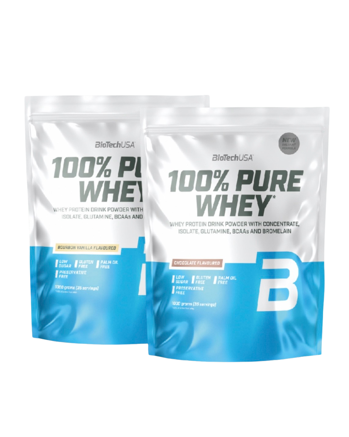 BioTechUSA 100% Pure Whey (1000g) er et højkvalitets valleproteinpulver med en høj biologisk værdi. Det består af en kombination af valleproteinkoncentrat og valleproteinisolat, beriget med aminosyrer som L-glutamin, L-arginin og BCAA'er.Produktet indeholder over 20 g protein pr. portion og er designet til at støtte muskelopbygning og -vedligeholdelse.