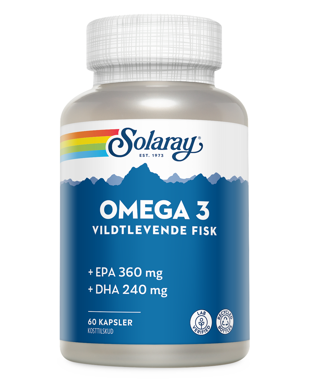Solaray Omega 3 er et kosttilskud, der indeholder fiskeolie fra vildtlevende fisk som ansjos, makrel og sardin. Hver kapsel leverer 1200 mg fiskeolie, heraf 360 mg EPA og 240 mg DHA – to essentielle omega-3 fedtsyrer, der understøtter hjertefunktion, hjerneaktivitet og syn.